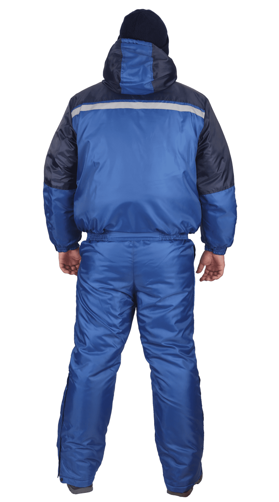 Удобный и практичный рабочий костюм, который надежно защищает от ветра, влаги и низких температур. Куртка, укороченная с застежкой на молнии с ветрозащитной планкой на кнопках. Пояс притачной на эластичной тесьме. Карманы накладные с клапаном, на левом рукаве специальный карман для средств связи. Утепленный капюшон, регулируемый по объему. Полукомбинезон с застежкой на двухзамковую молнию, с нагрудным и боковыми карманами. Бретели с эластичной тесьмой, пристегиваются к грудке фастексами. Яркая цветовая гамма — василек с темно-синей отделкой. Притачные светоотражающие полосы по линии груди и спины. Костюм выполнен из ткани «Оксфорд» с водоотталкивающими свойствами.